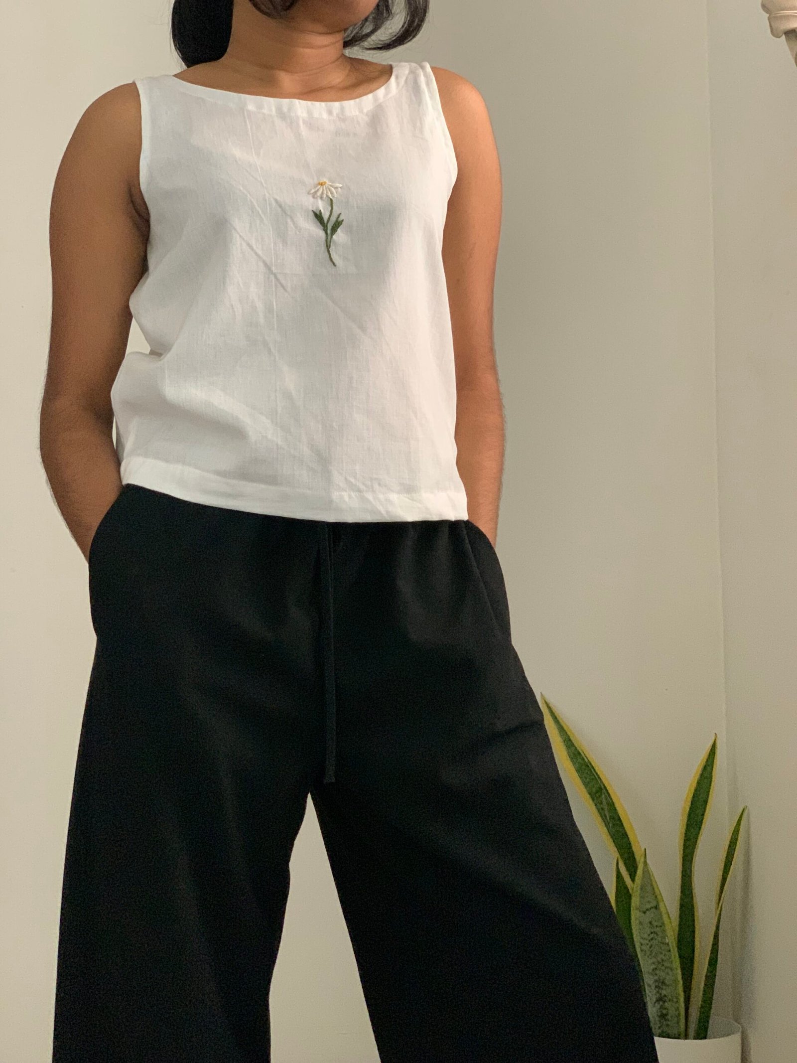 Be the first to review “Embroidered flower white crop top”